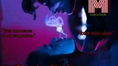 He leaned lazily against the sink, a cigarette dangling from his lips, his sharp eyes flickering toward her. Tattoos curled around his arms like inked secrets, and silver rings glinted from his eyebrow and tongue. A dangerous smirk lifted his lips as he exhaled a cloud of smoke.
