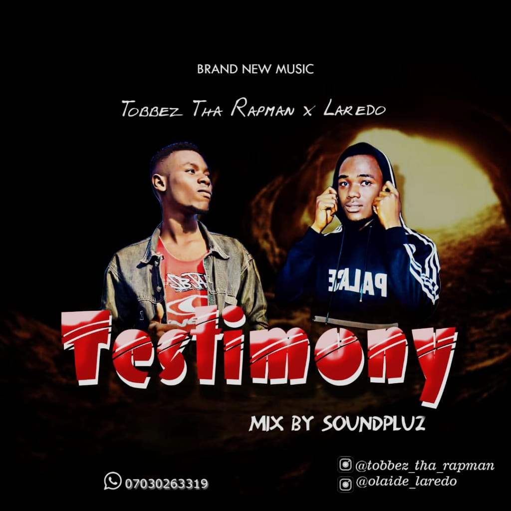 TOBBEZ THA RAPMAN from Ekiti but base in Ikotun Egbe Lagos, released his second official song title TESTIMONY. This is a prayer song that you all going to fall for. He featured another fast rising afro pop artist from Oyo state widely known as his Stage name *LAREDO*