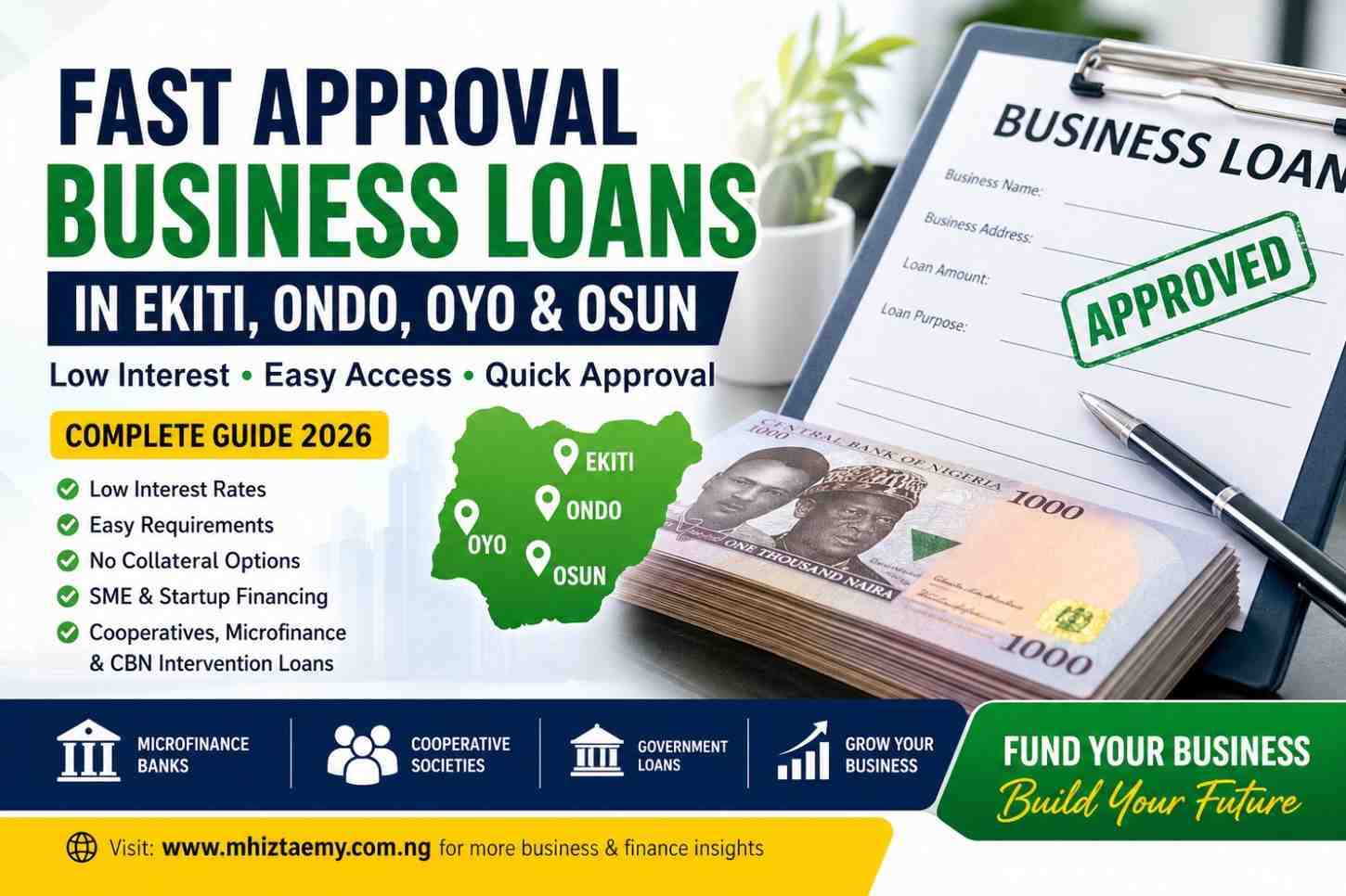 • Fast Approval Business Loans in Ekiti, Ondo, Oyo & Osun (Low Interest & Easy Access Guide 2026)