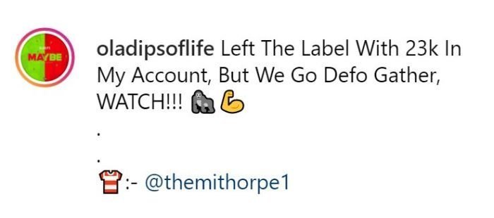Taking to his Instagram page, Oladips posted a picture of himself and captioned it “Left the label with 23k in my account, but we defo gather, WATCH!!!”
